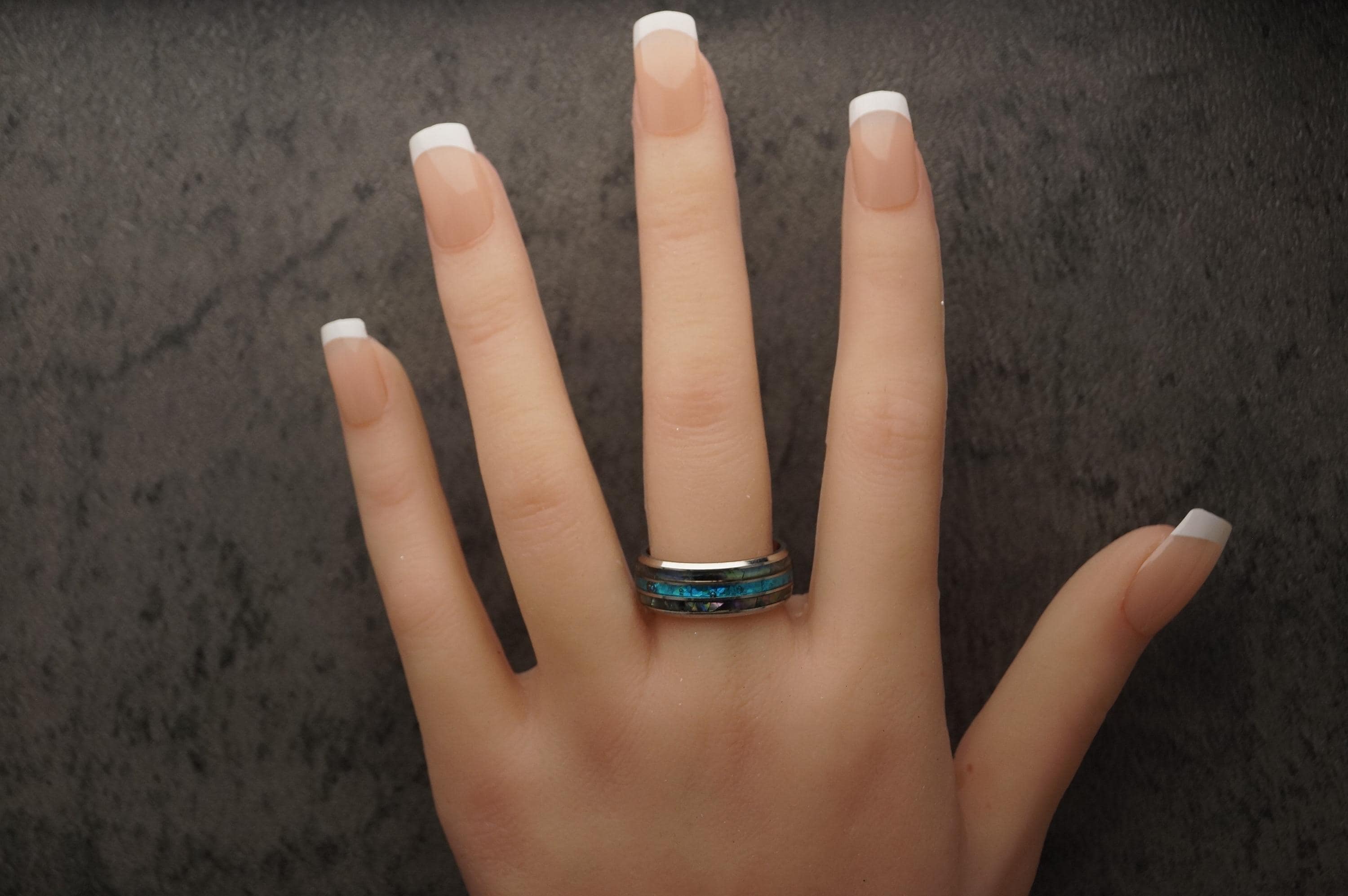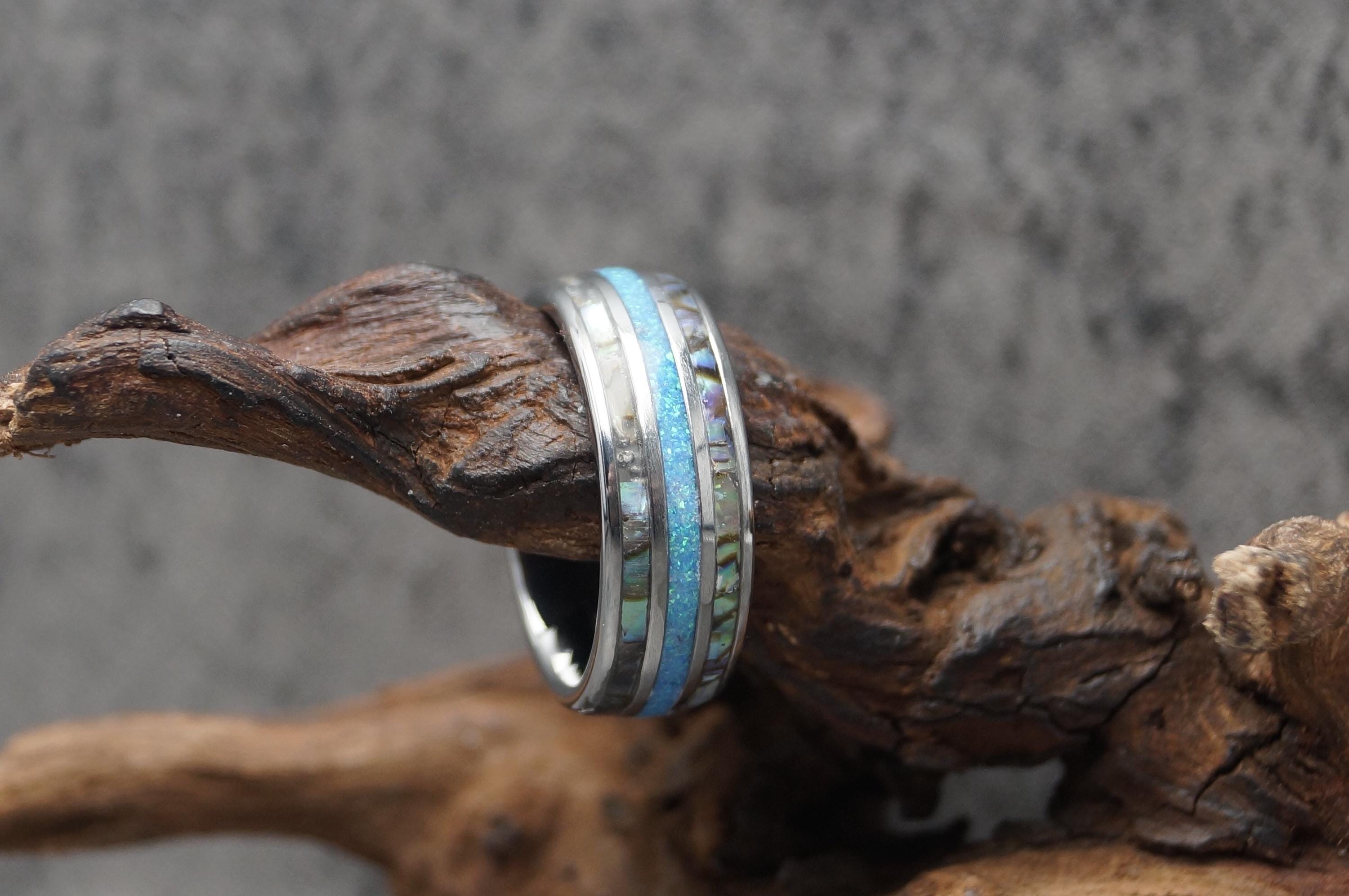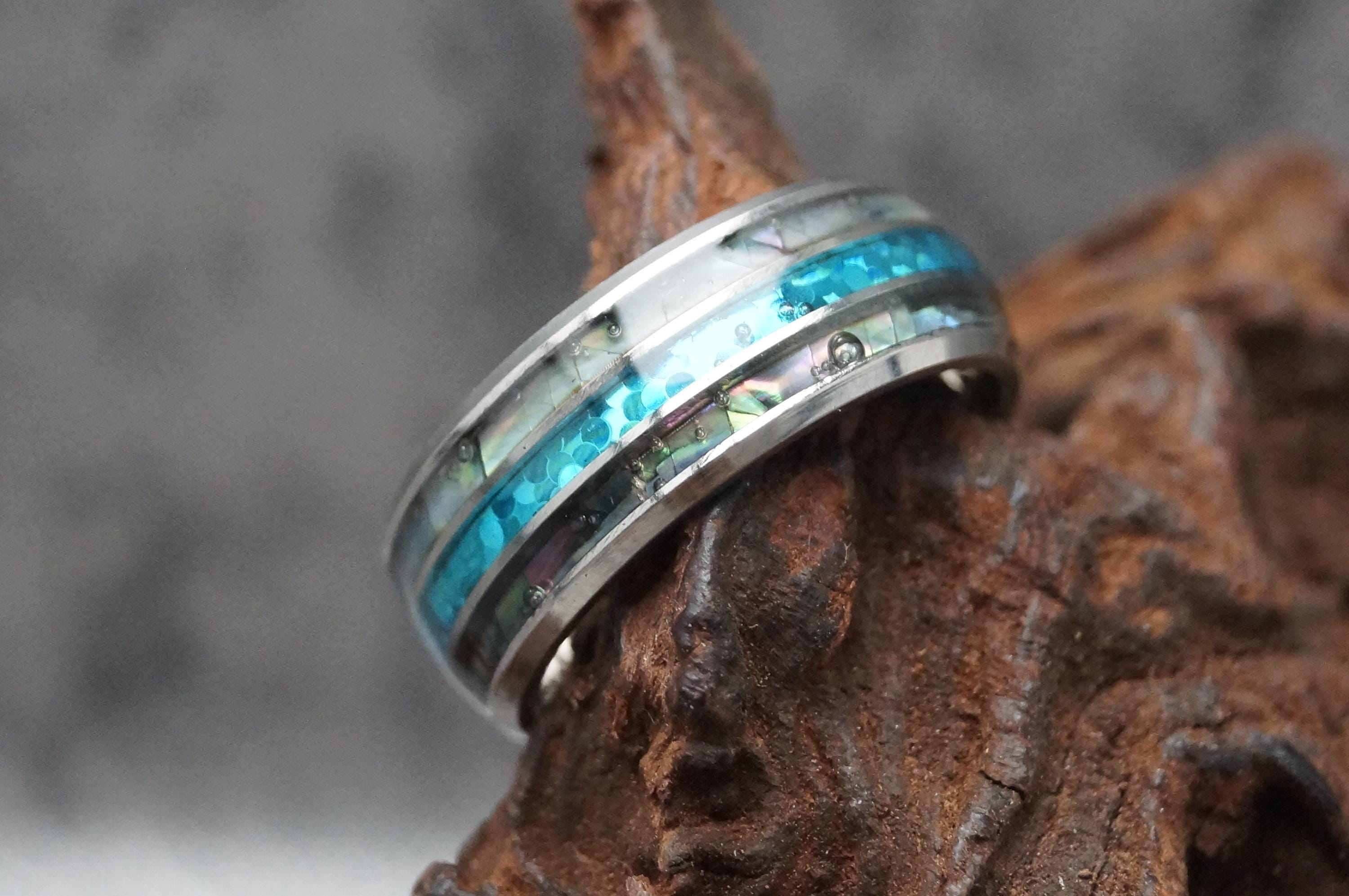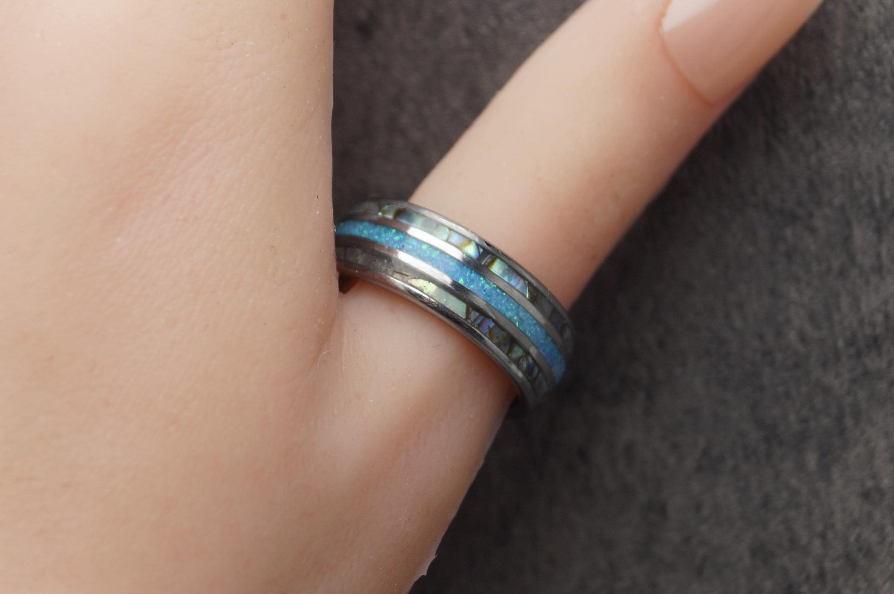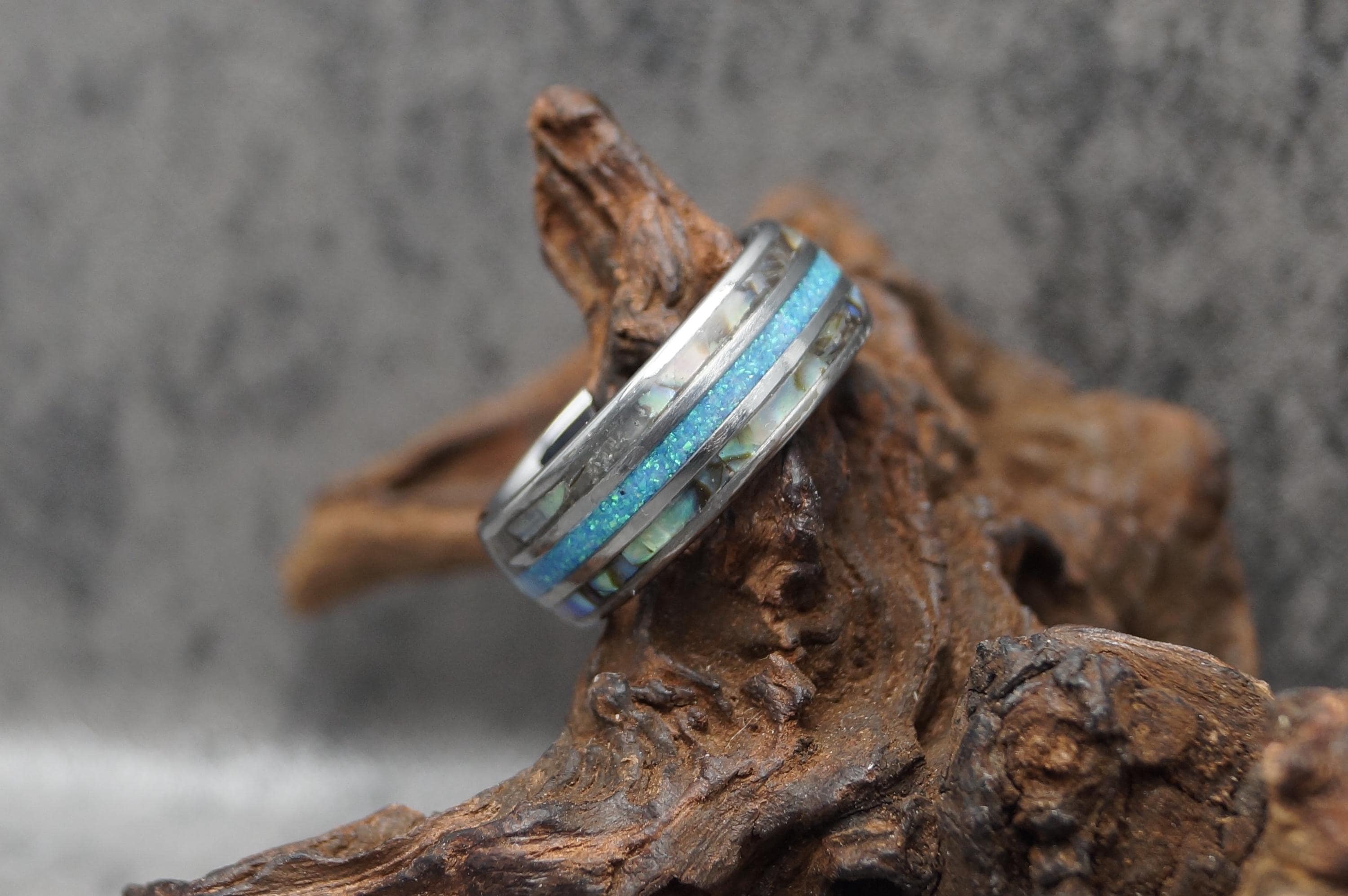 Ring Width: 8 mm / 0.314961" - Every Abalone with Blue Opal Ring is unique