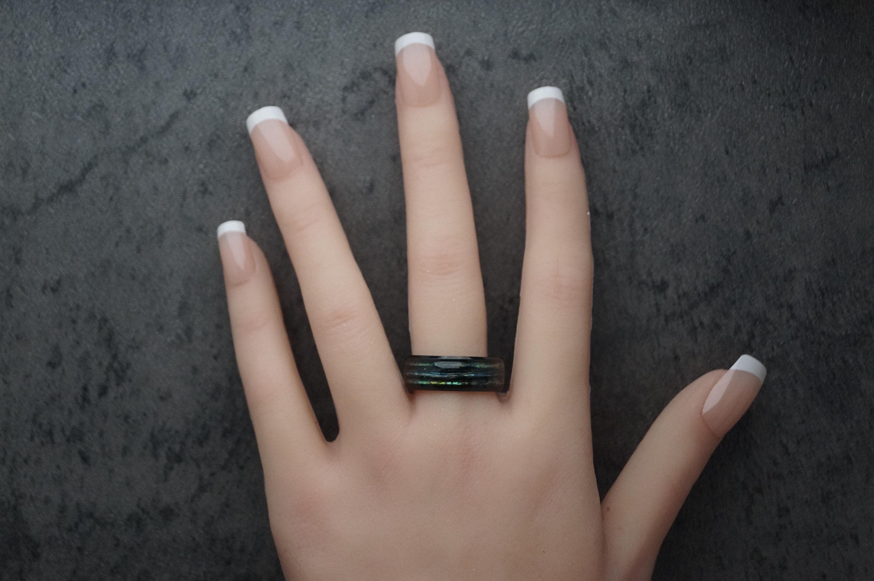 Ring Width: 8 mm / 0.314961" - Every Abalone Ring with Blue Opal is unique