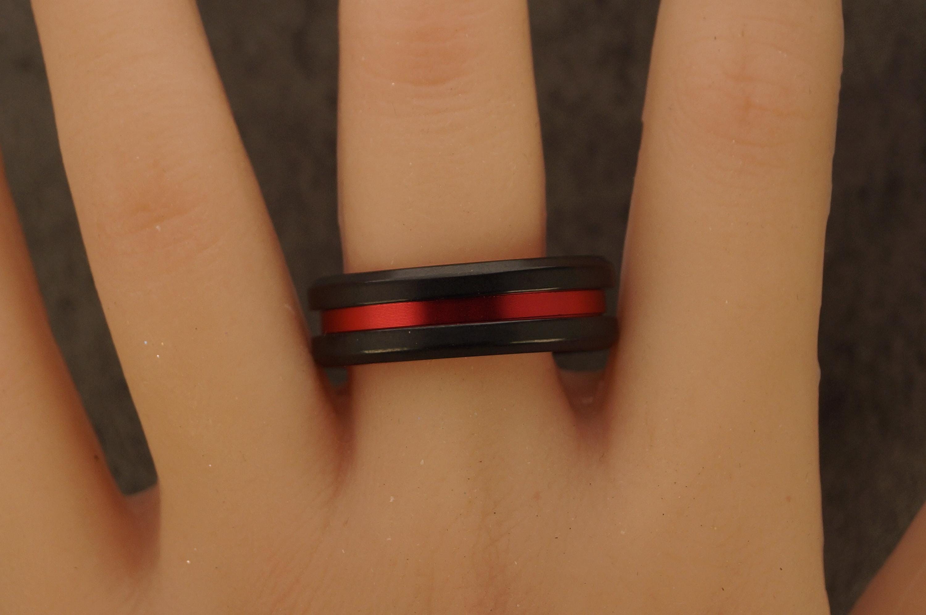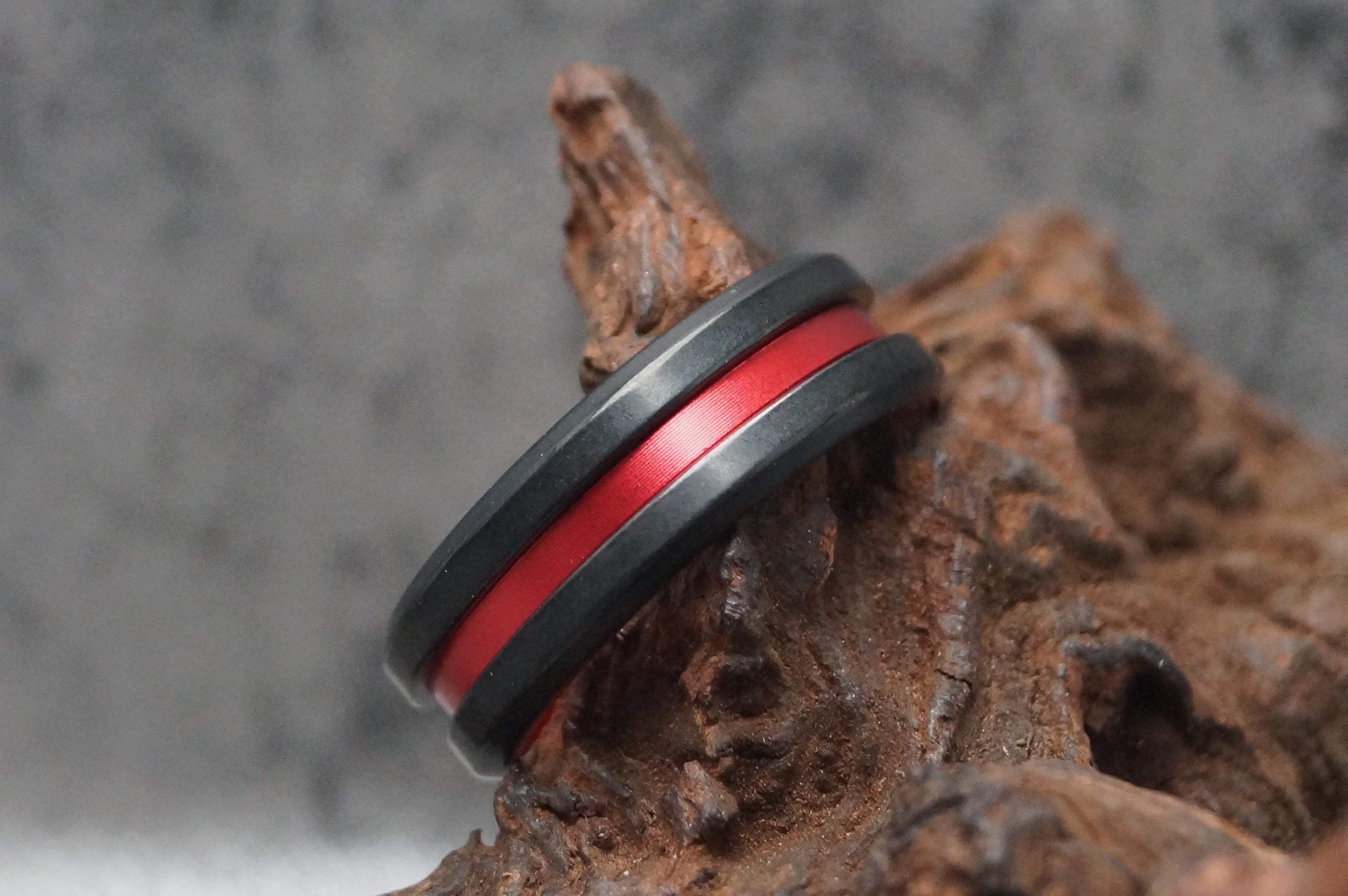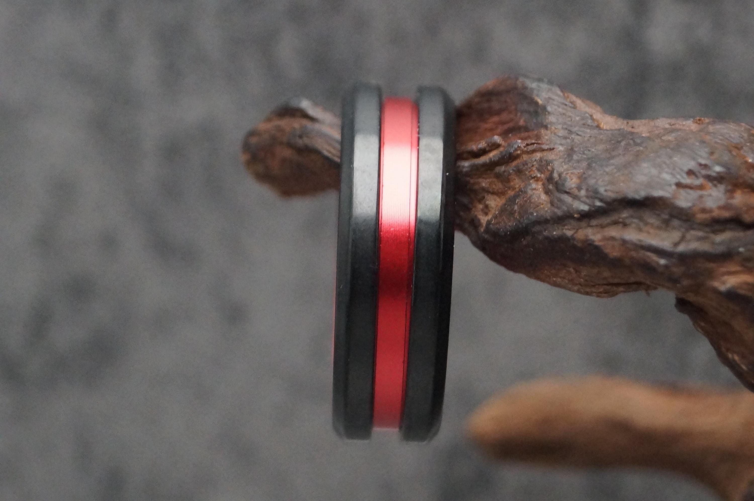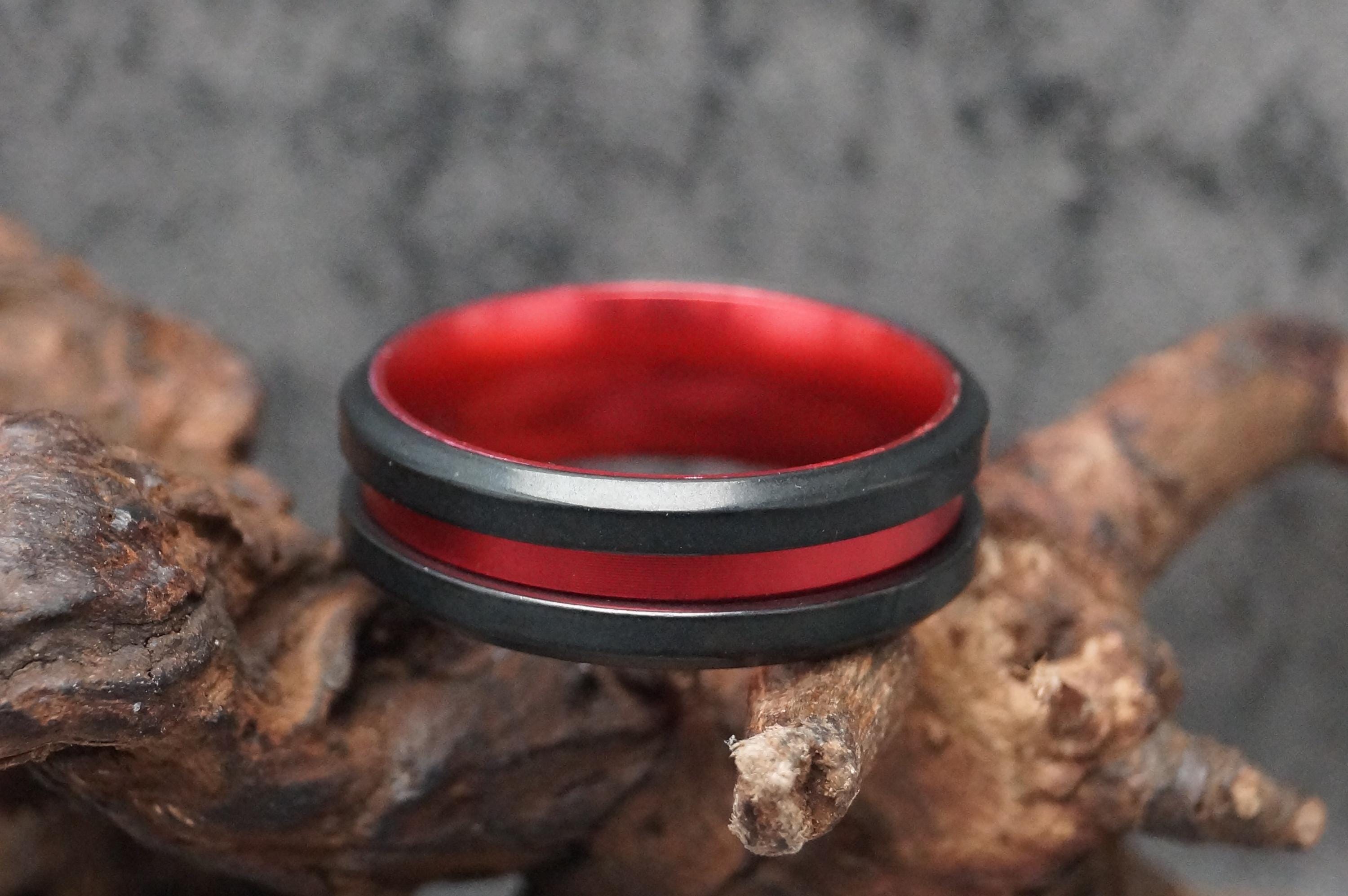 Red & Black Tungsten Wedding Band - Red & Black Ring