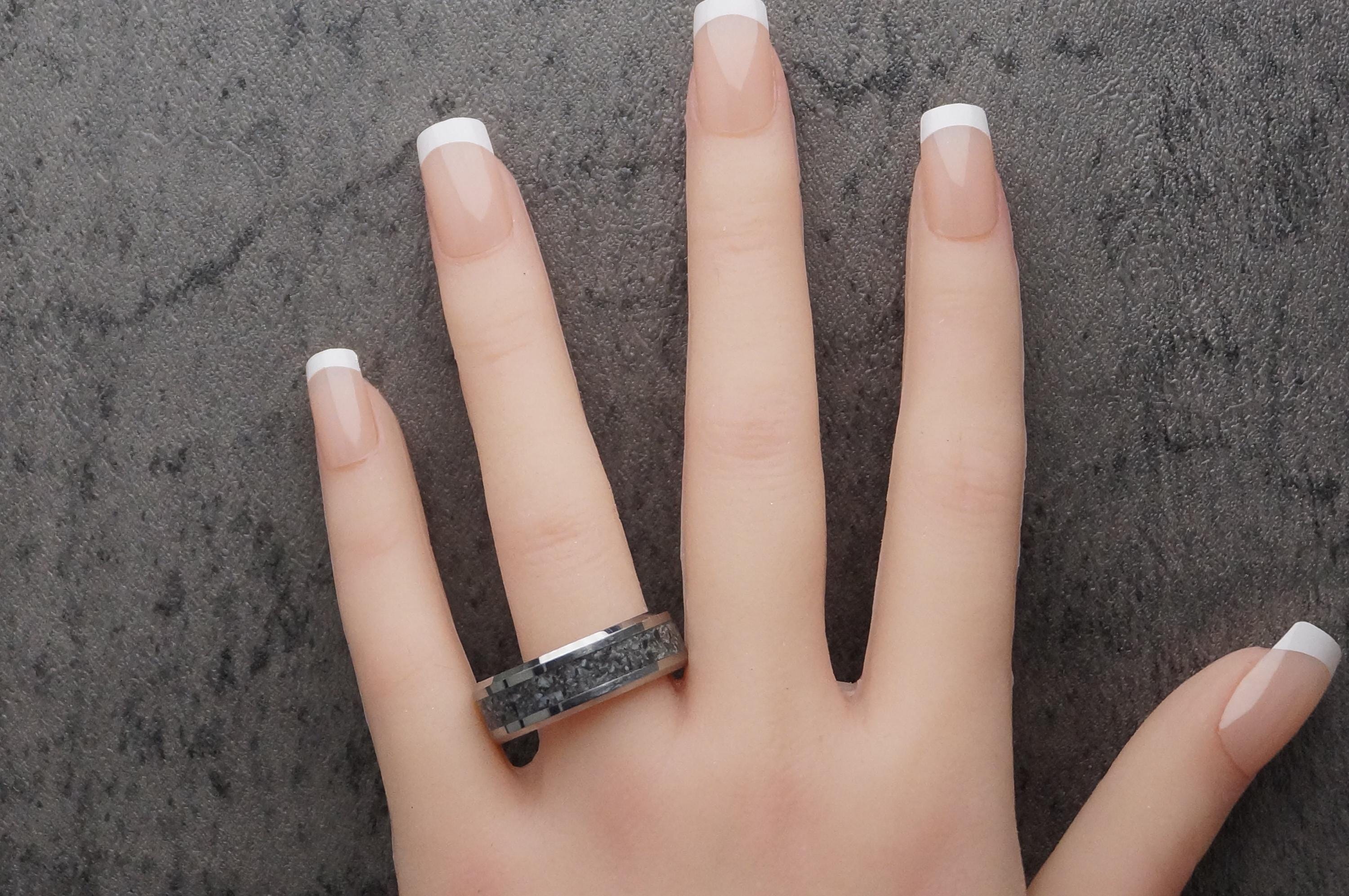 Natural Snowflake Obsidian Inlay Tungsten Carbide Wedding Band available Band 4 mm, 6 mm or 8 mm Wide Rings - Unique Ring - Tungsten Inlaid Ring - Natural Real Snowflake Obsidian Inlay 4 mm, 6 mm or 8 mm wide Tungsten Ring - Unique Ring