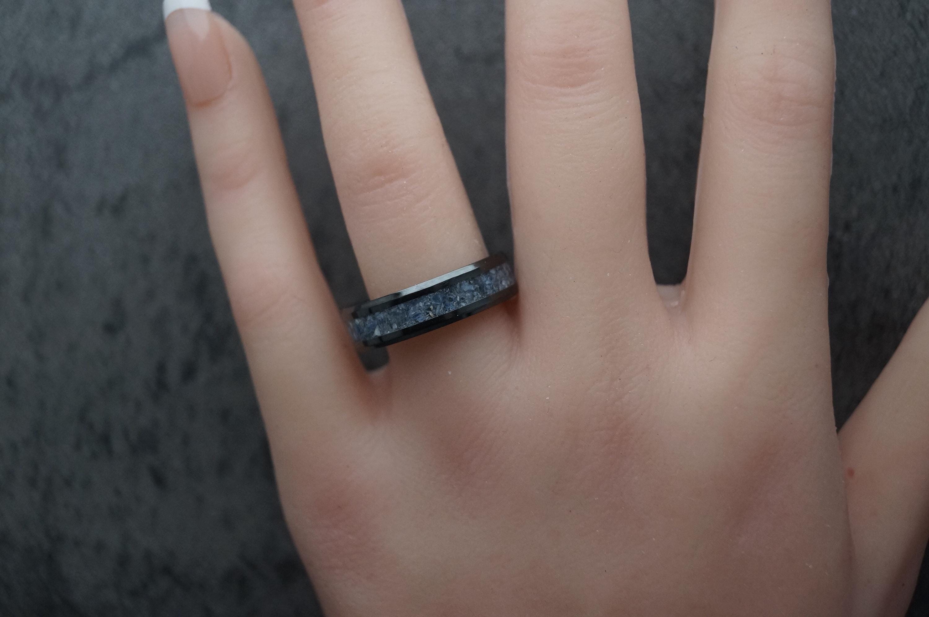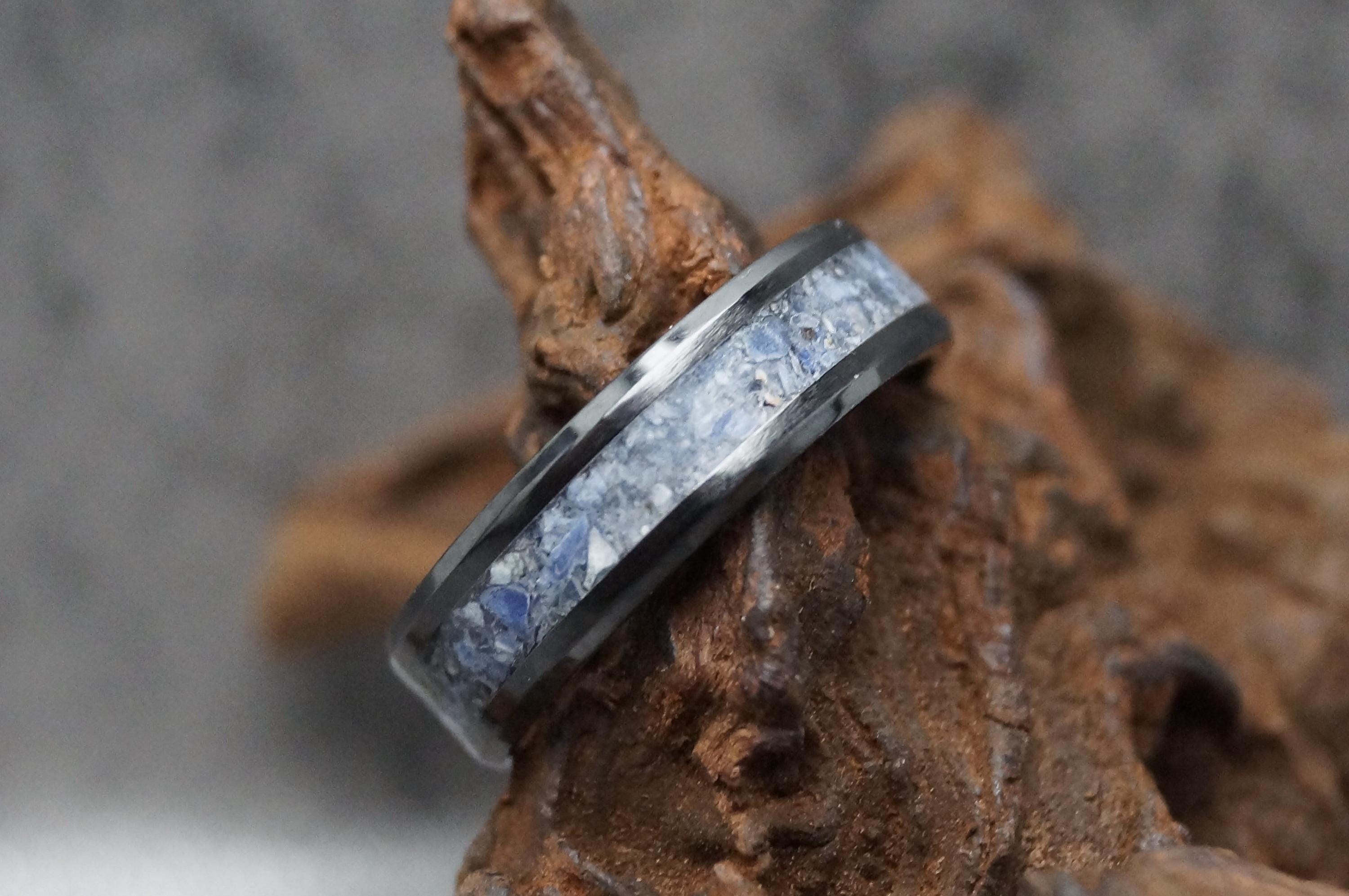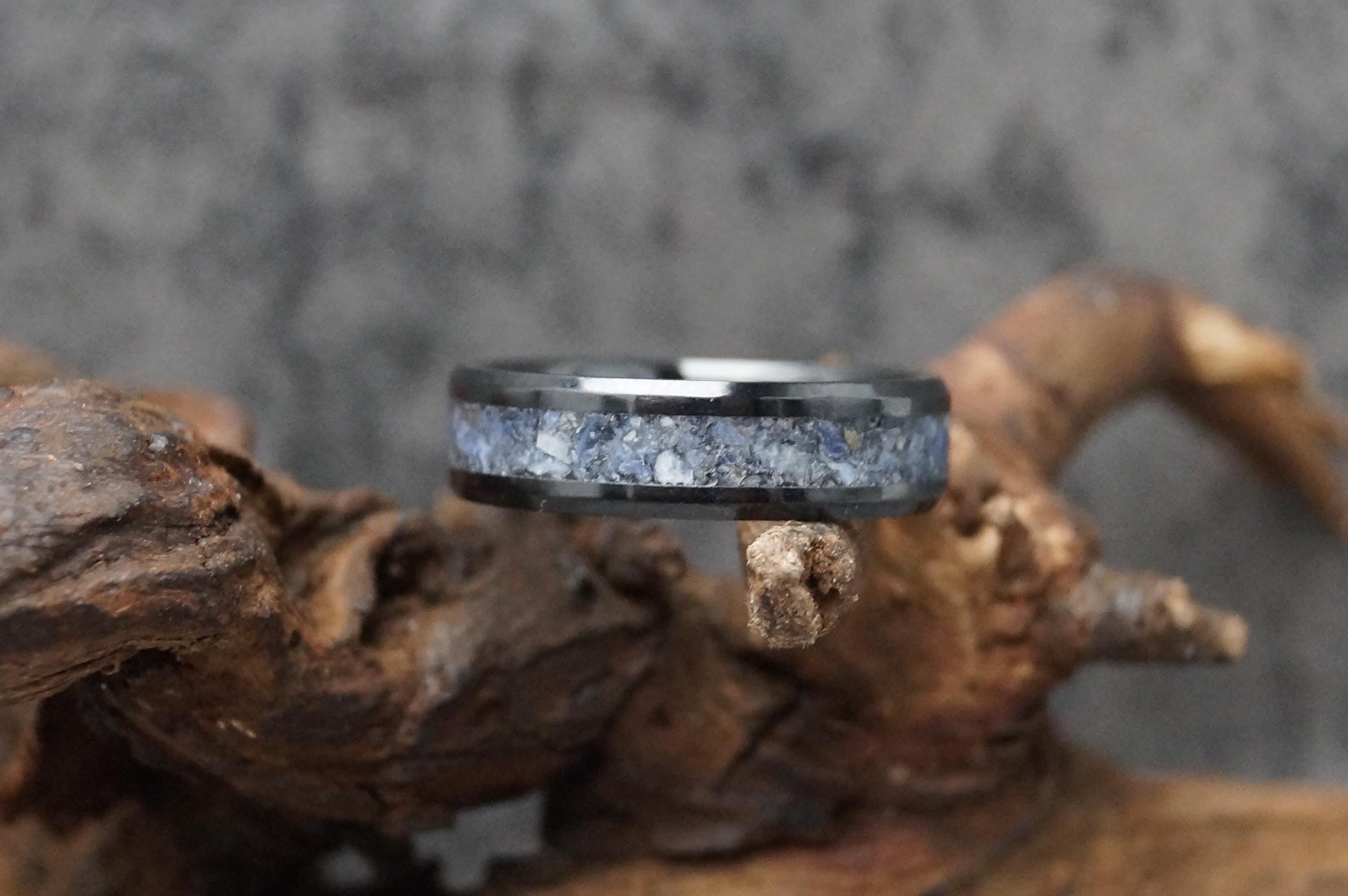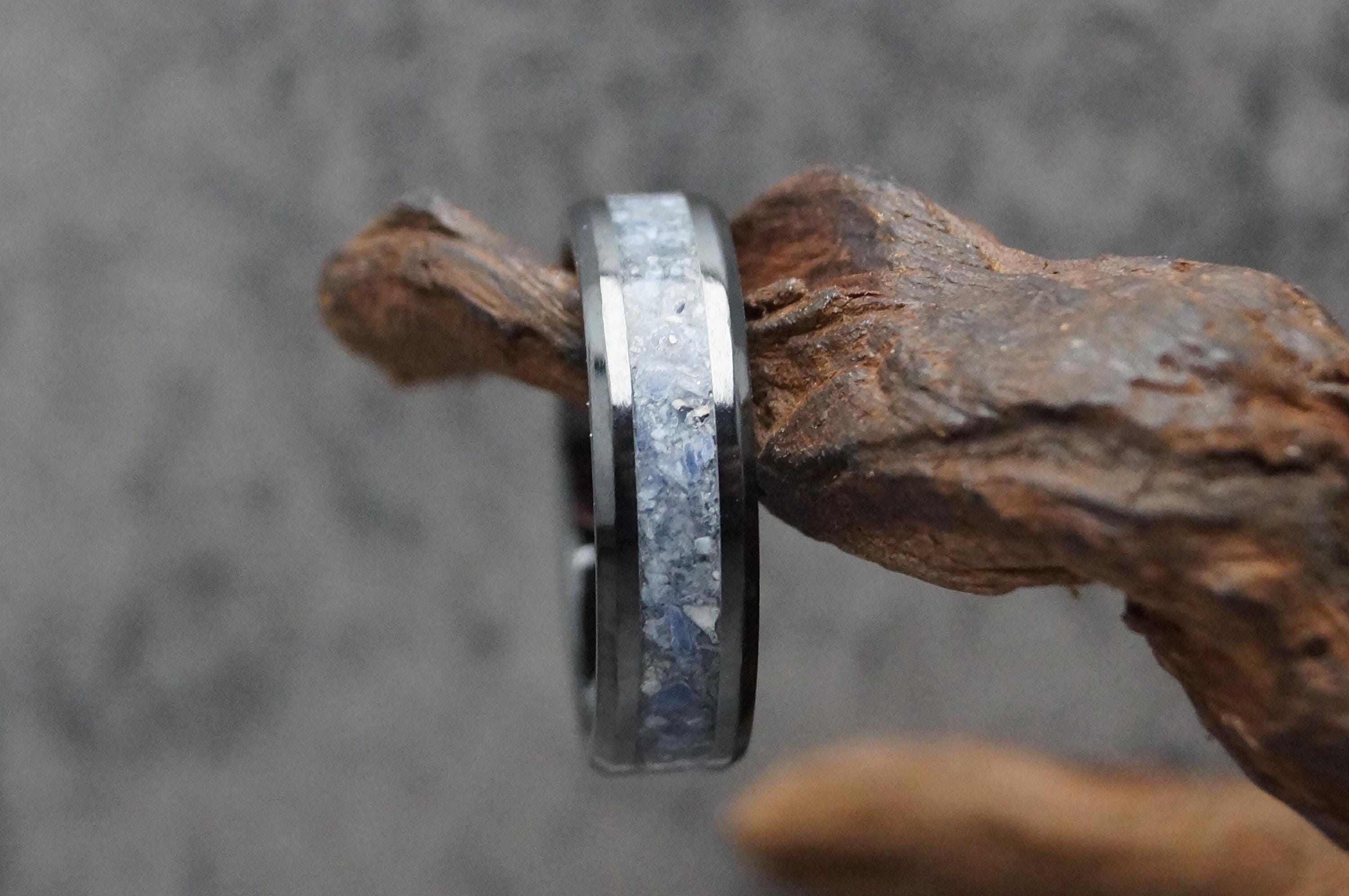 Natural Sodalite Inlay Tungsten Carbide Wedding Band available 4 mm, 6 mm or 8 mm wide rings - Tungsten Inlaid Ring - Natural Real Sodalite Inlay 4 mm, 6 mm or 8 mm wide Tungsten Ring - Unique Ring