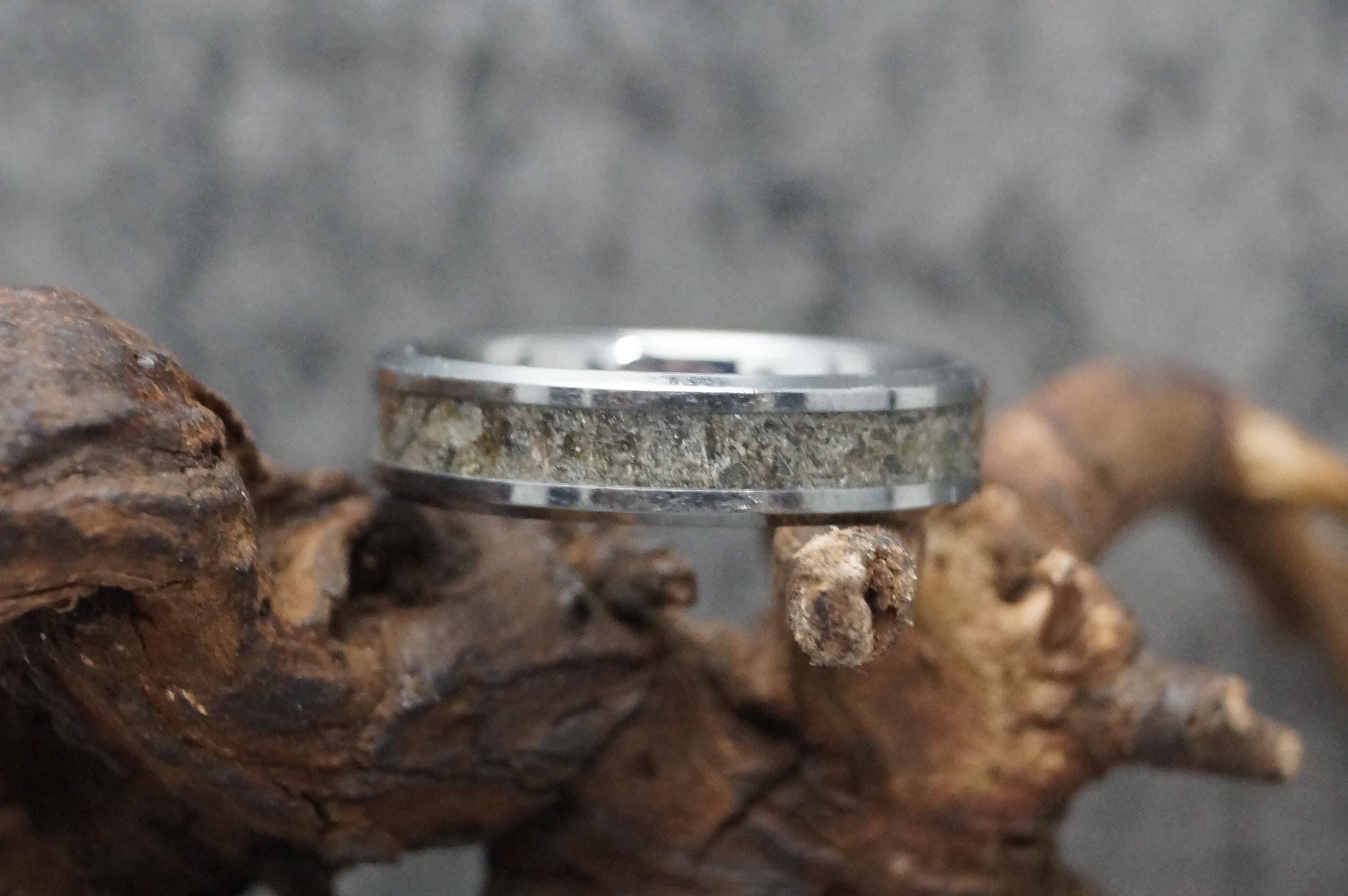 This genuine Tungsten Carbide ring inlaid with 100% Natural Thai Tektites Meteorite Space Rock.