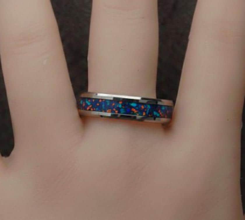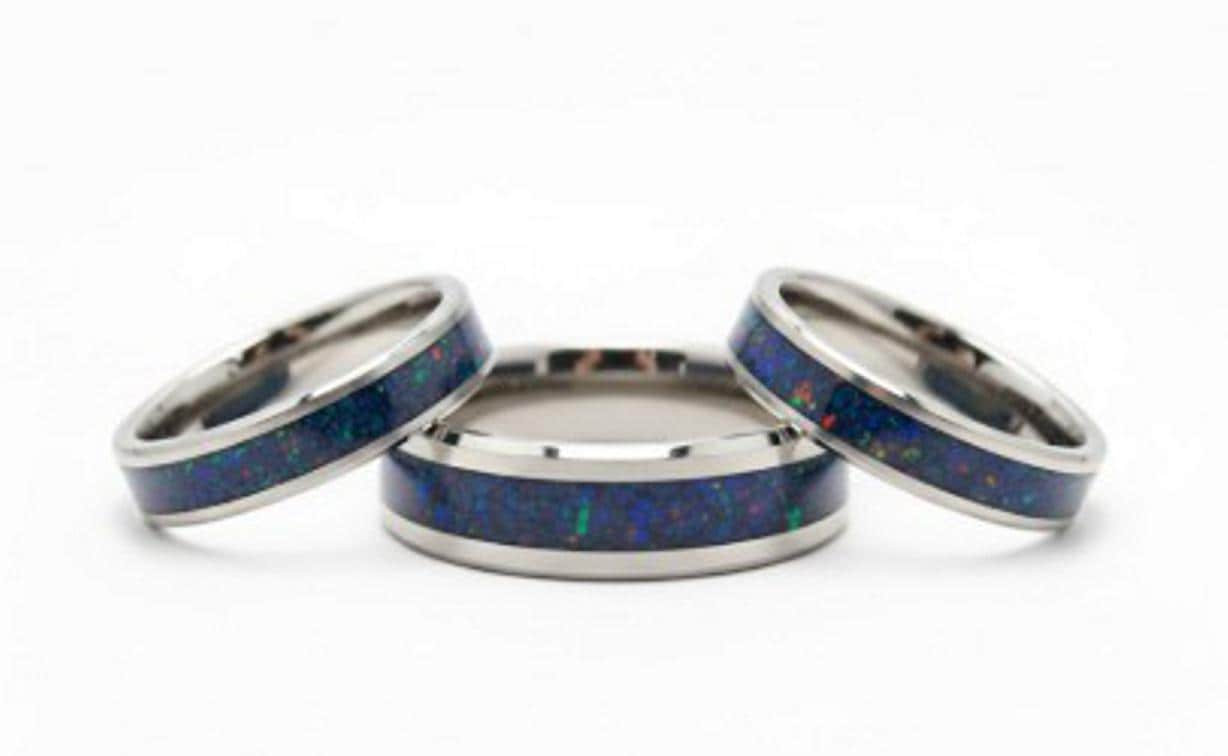 Black Opal #3 Tungsten Wedding Band - available 4 mm, 6 mm or 8 mm wide ring - Tungsten Inlaid Ring