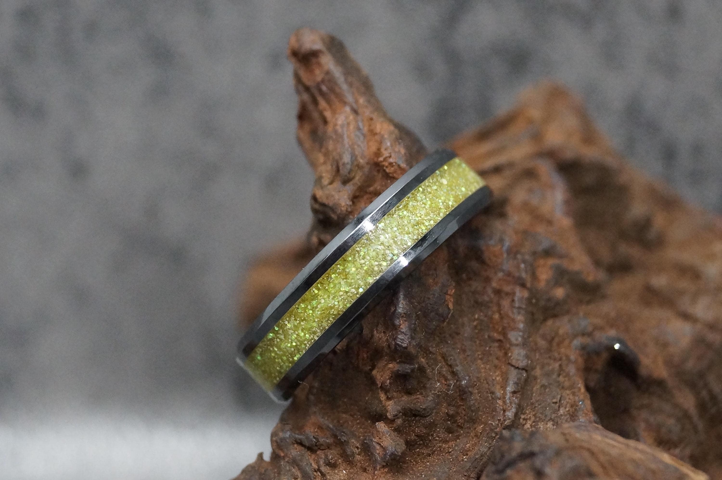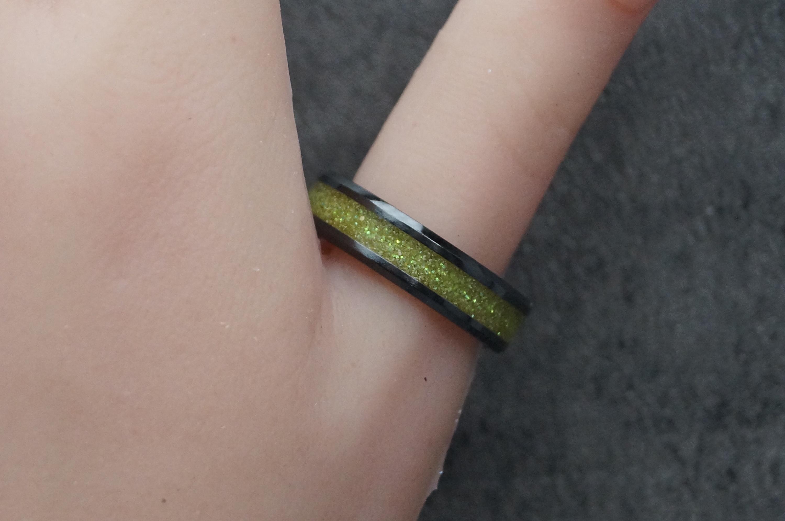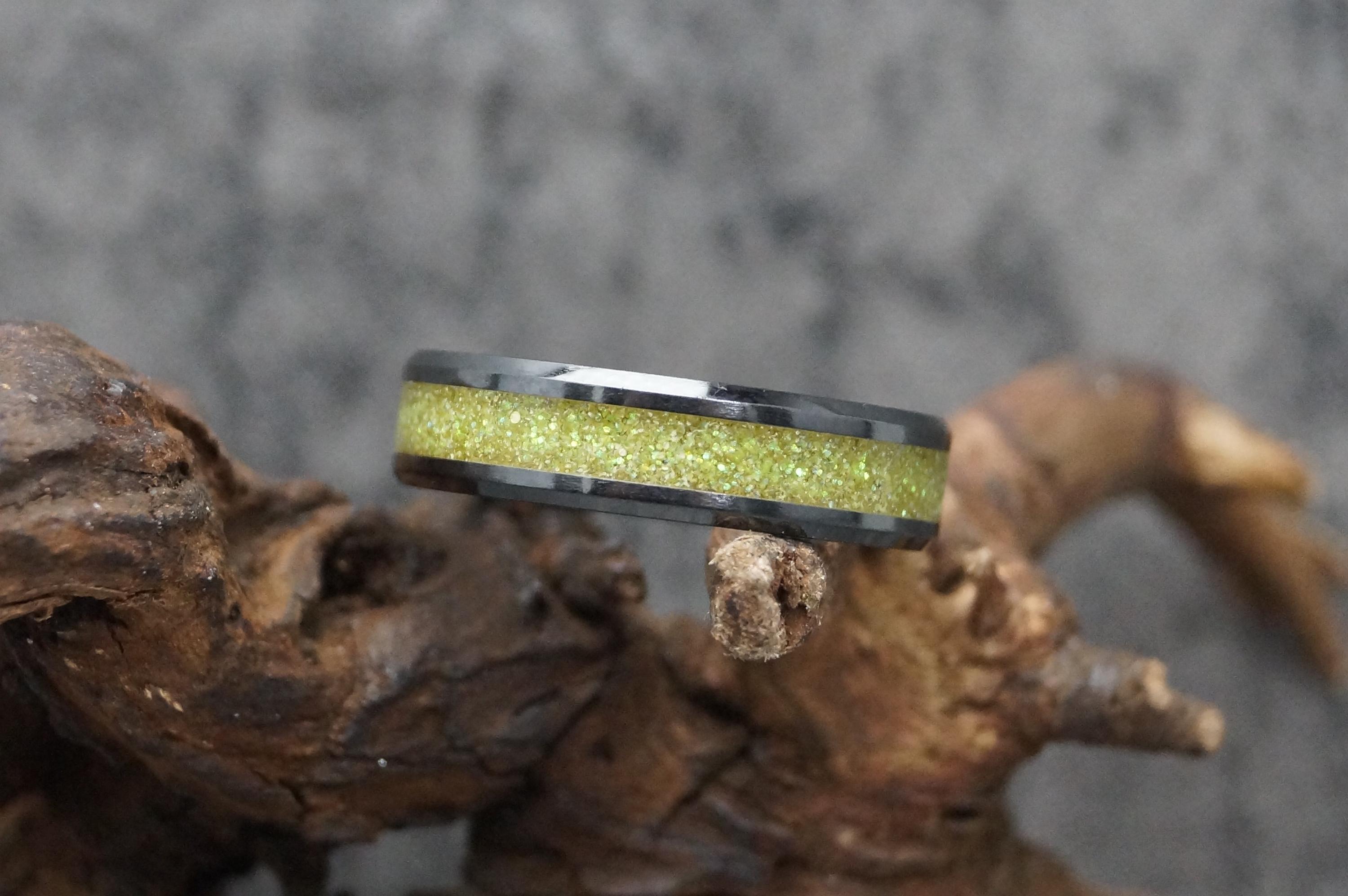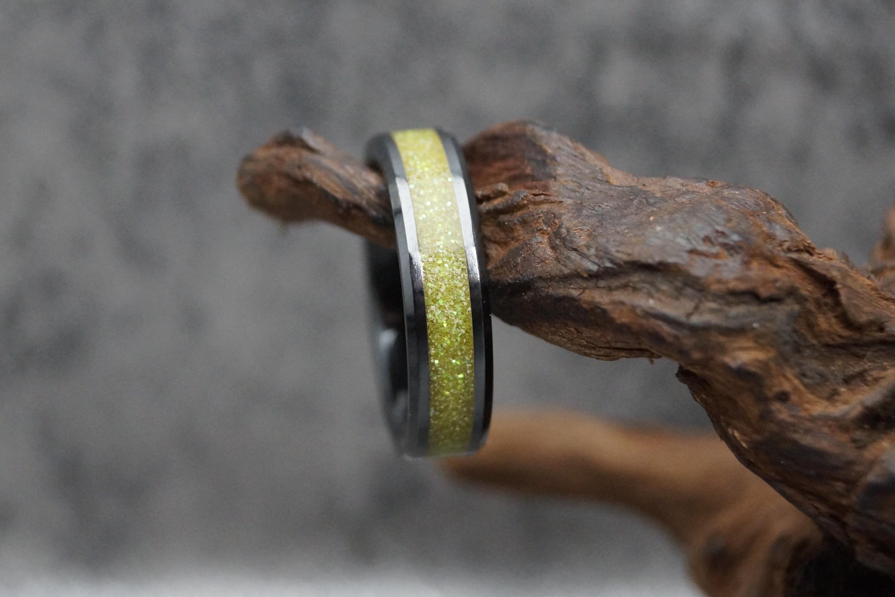 Pet Fur Ring / Pet Ashes Ring with 'Yellow Gold' Eco-Glitter Black Ceramic Band available 4 mm, 6 mm or 8 mm wide ring.